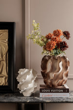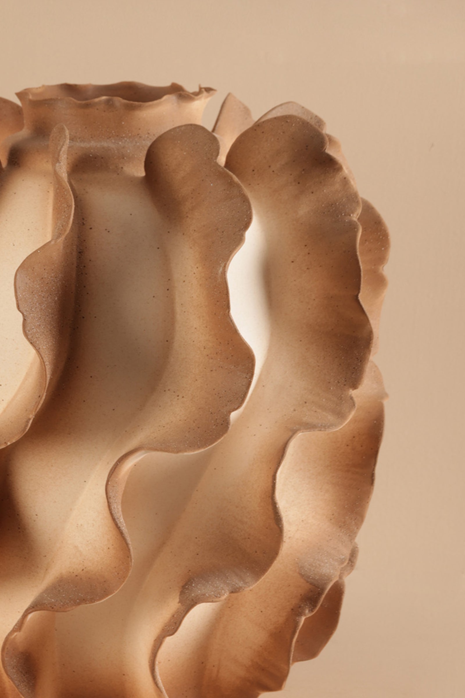 This Cirqle Ceramic Vase – Sculptural Home Decor is 26.5 x 26.5 x 30 cm stands out with its flowing wave-like surface in a rich terracotta finish. With its bold curves and sculptural silhouette, it brings a sense of movement and warmth to any space — a perfect statement piece for contemporary or artistic interiors.