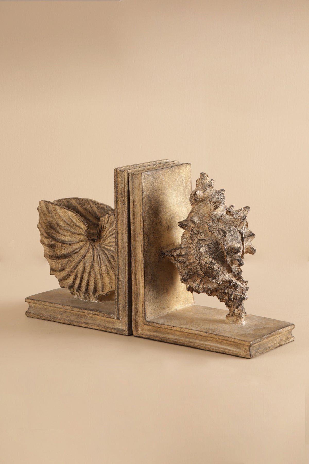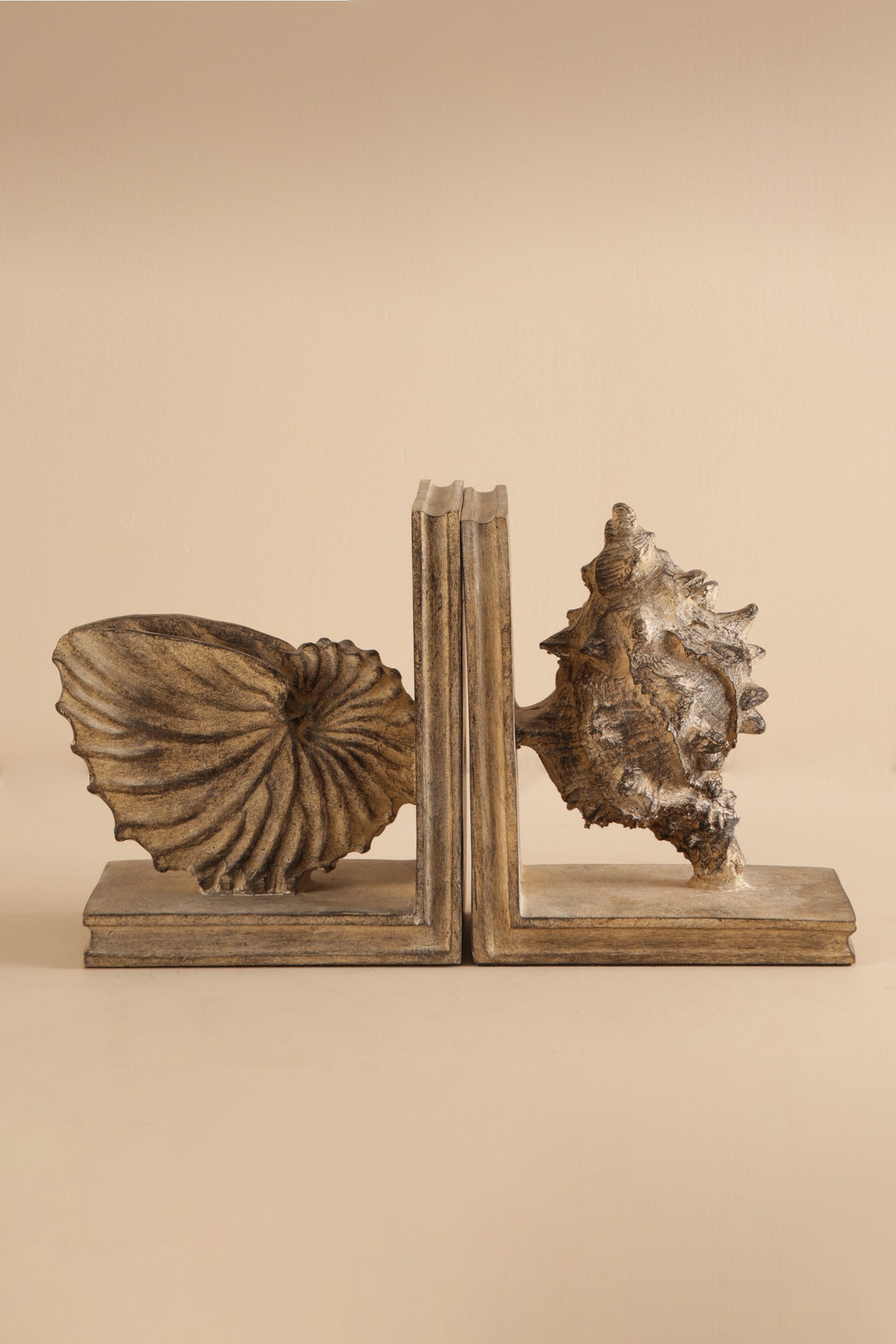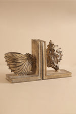 It features sculpted nautilus and conch shells in a stone-textured resin finish. This home decor mounted on clean, stepped bases, the design blends natural elegance with understated structure. It is ideal for adding a refined, organic touch to bookshelves, desks, or consoles.
