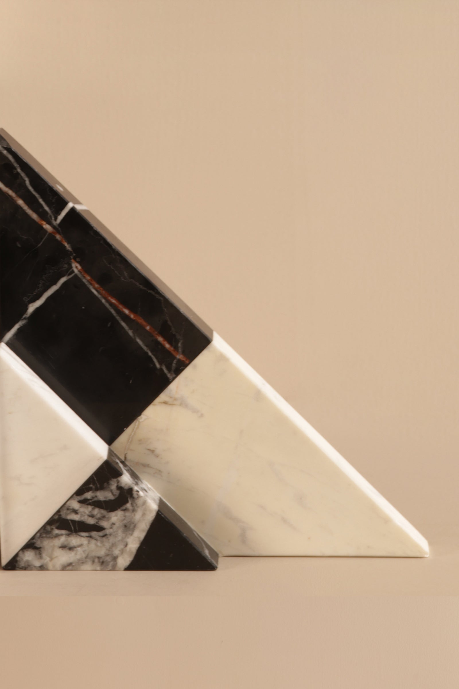 This set of geometric marble bookends brings bold contrast and modern sophistication to your shelves. Crafted with black and white marble in an angular patchwork design, they offer a perfect balance of function and sculptural beauty