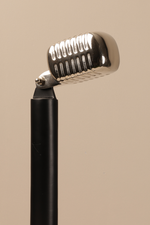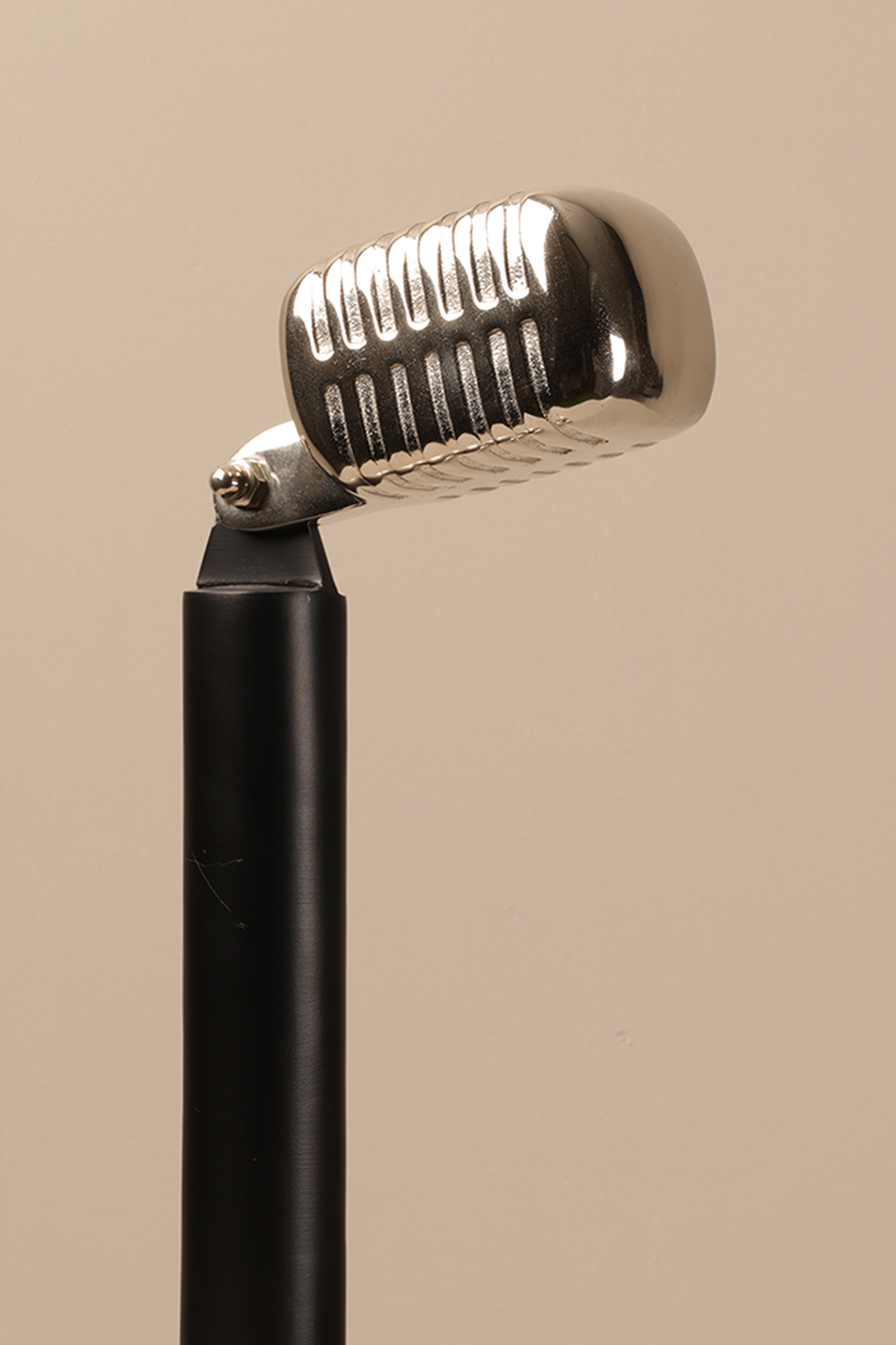 A blend of elegance and artistic craftsmanship, the Echo Luxe Mic is a statement décor piece that captures the essence of vintage charm with a modern twist. Featuring sleek silver accents at the top and bottom, this decorative microphone adds a touch of sophistication and nostalgia to any space, making it perfect for music lovers and design enthusiasts alike.