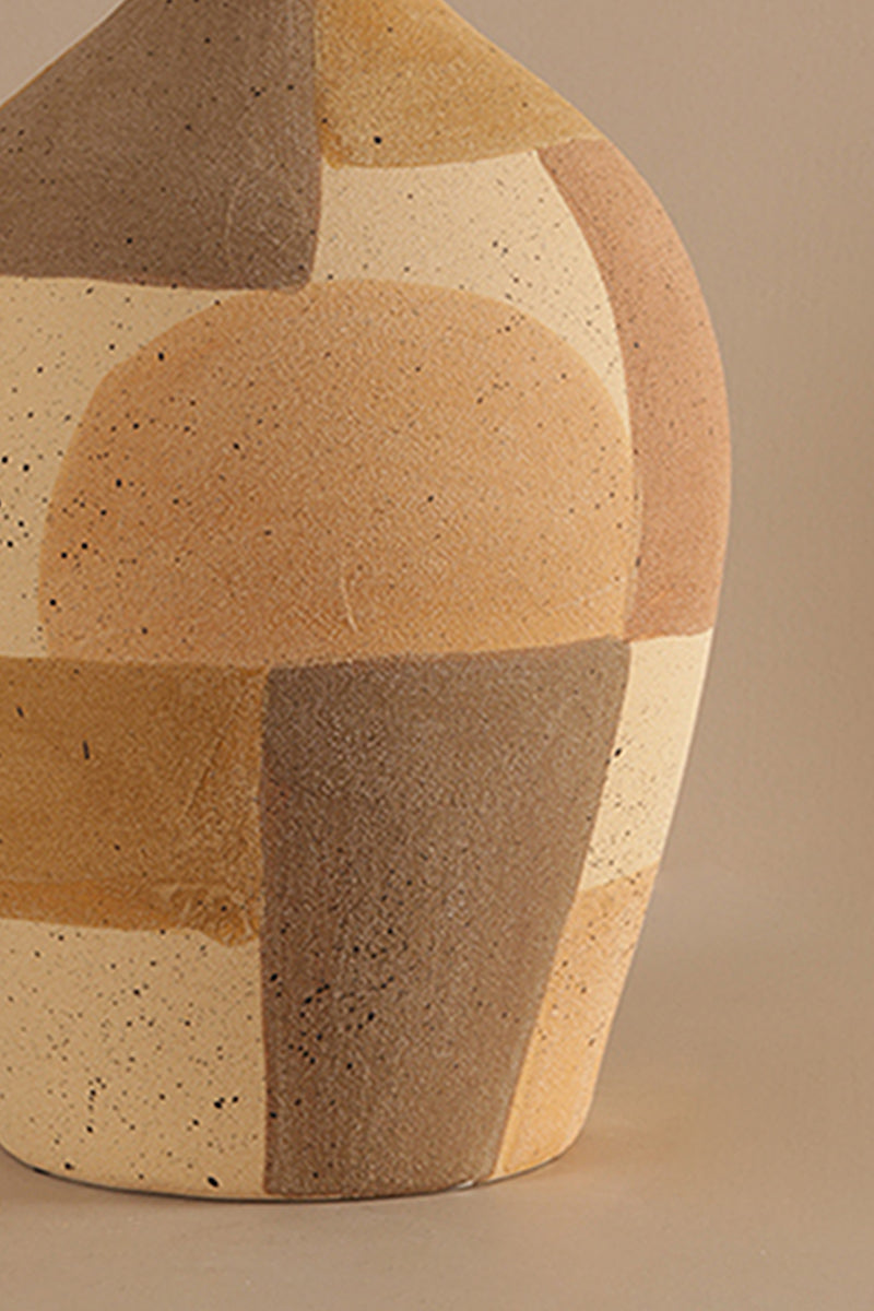 A creative blend of form and color, Rustico Block Vase- B brings hand-painted artistry to any tabletop or shelf. Its smooth curves and soft-hued geometric blocks offer a modern yet rustic feel that complements both minimalist and boho-chic interiors.