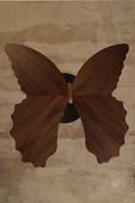 A sculptural accent table with a uniquely shaped organic wooden top resembling natural butterfly wings. Supported by a sleek stainless steel column and a sturdy circular metal base, this table blends nature-inspired artistry with modern minimalism.
