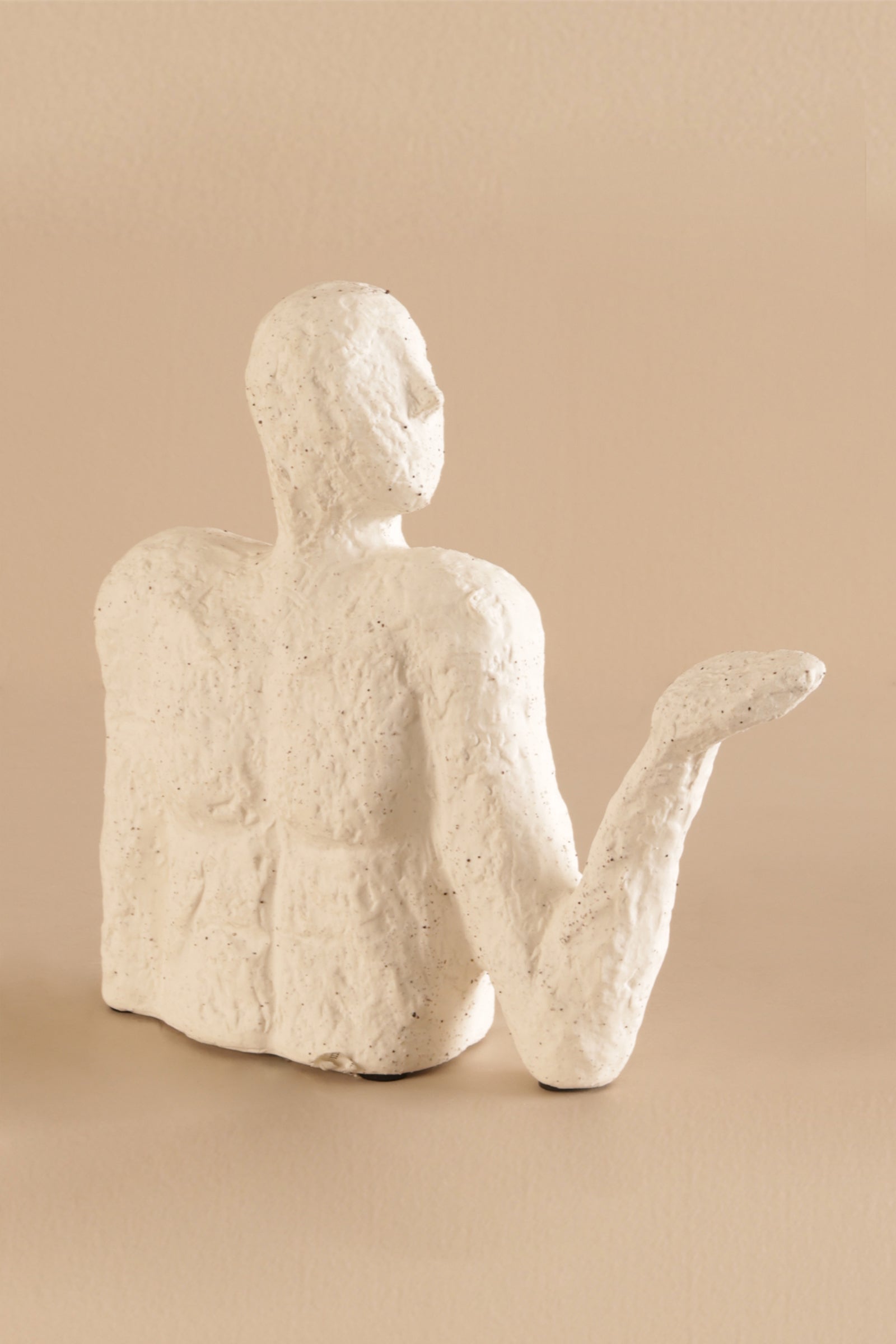 Celebrate the beauty of form and expression with this minimalist human sculpture. Crafted in a textured white stone-like finish, the figure presents an open-handed gesture—symbolizing offering, balance, or thought.