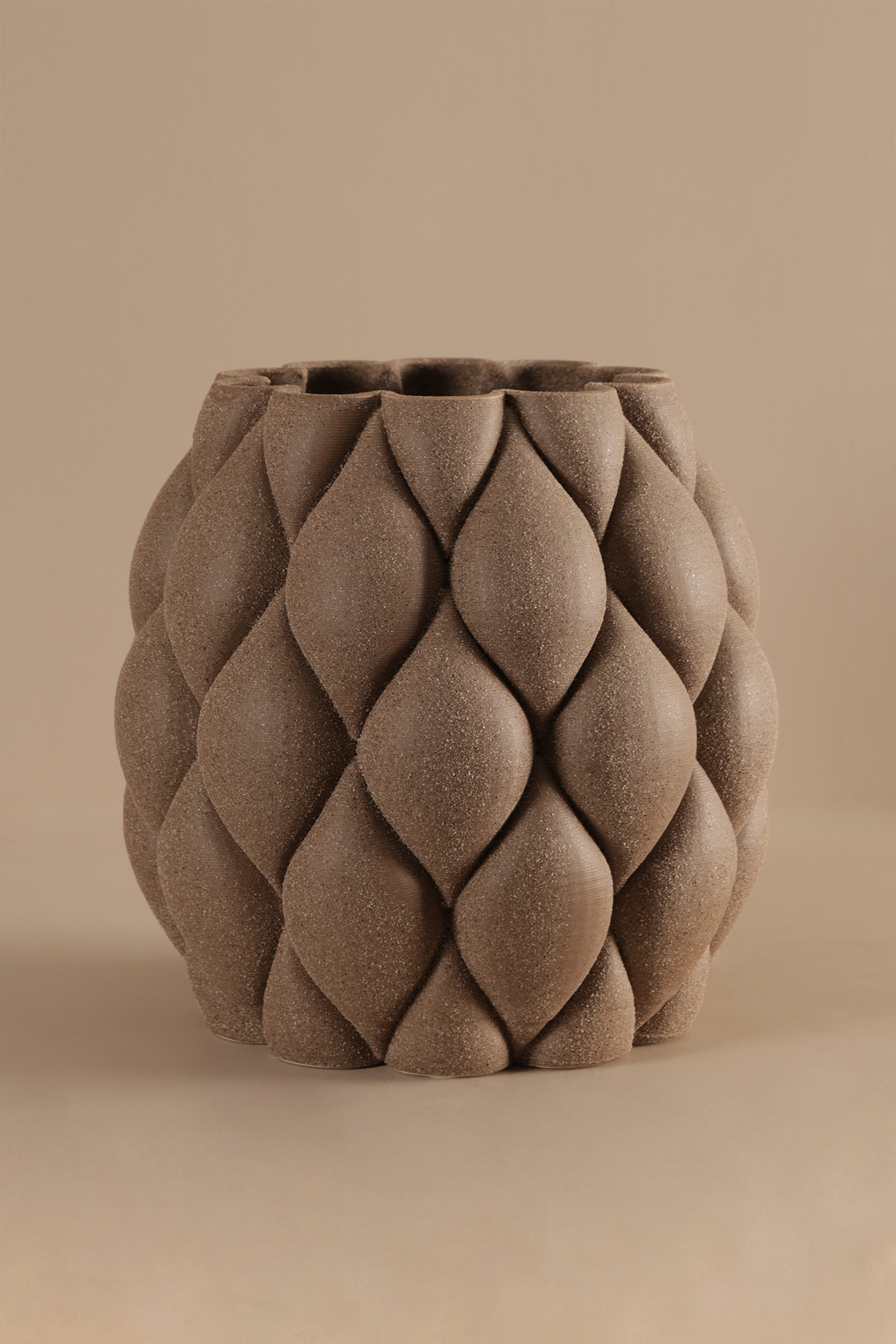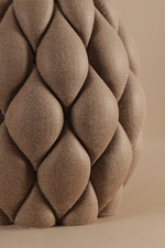 Bottola earth Vase showcases a quilted, geometric texture that evokes organic elegance with a sculptural twist. Its matte earthen finish and unique surface pattern make it a statement piece for contemporary or rustic décor schemes.