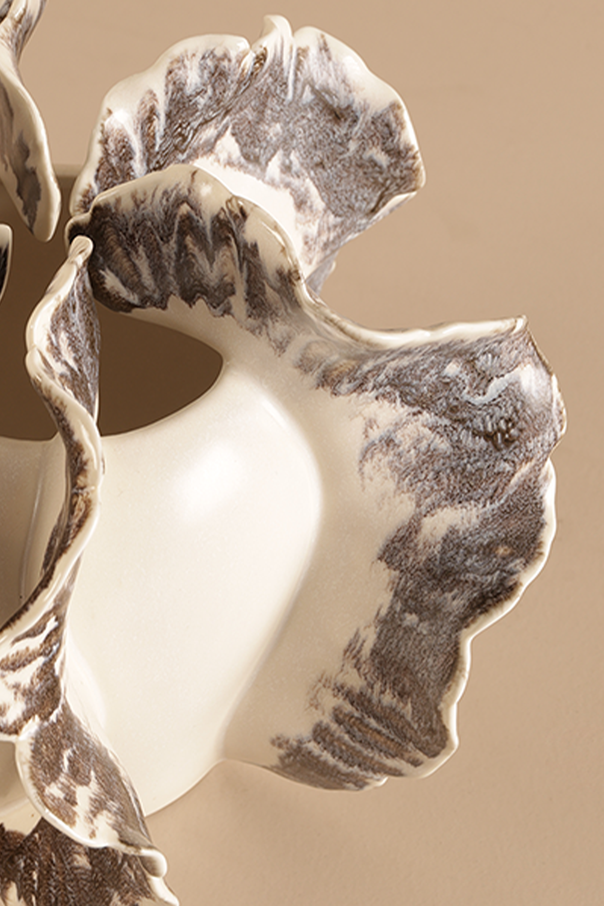 A stunning statement piece, this ceramic vase draws inspiration from the raw beauty of blooming petals. The sculpted ruffled edges, hand-detailed in bold black, contrast beautifully against the smooth matte white surface, adding drama and elegance to modern or artistic interiors.