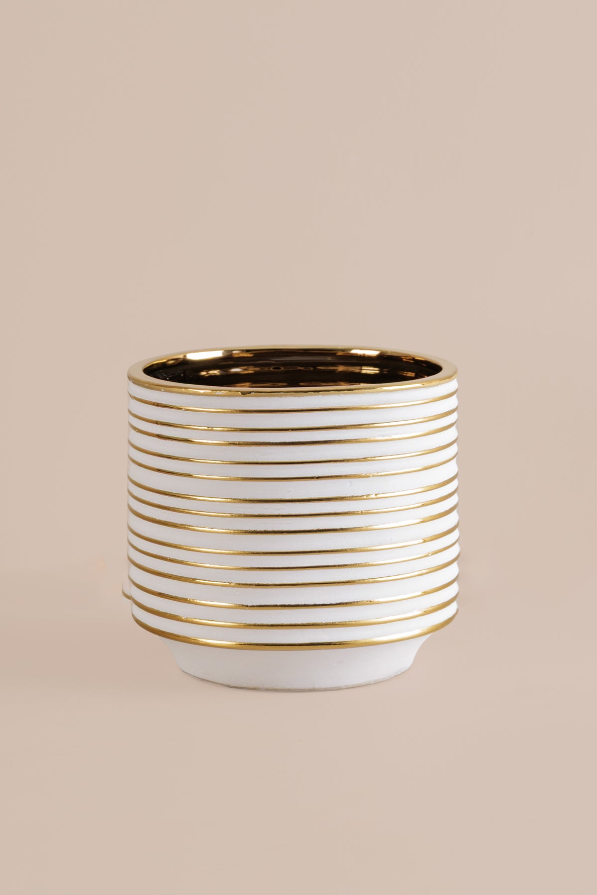 Casa Rings White Vase is crafted in ceramic with a lustrous silver finish and deep black interior,this planter is medium in size offers modern symmetry with a refined edge. It is perfect as a decorative set or as individual statement pieces for tabletops, shelving, or luxe indoor greenery.