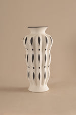 A sculptural fusion of tradition and modernity, Leafy white flower vase eatures an elongated silhouette with a hand-painted black leaf motif on a textured white ceramic surface. Its tall stature and rhythmic vertical design bring elegance and movement to any setting.