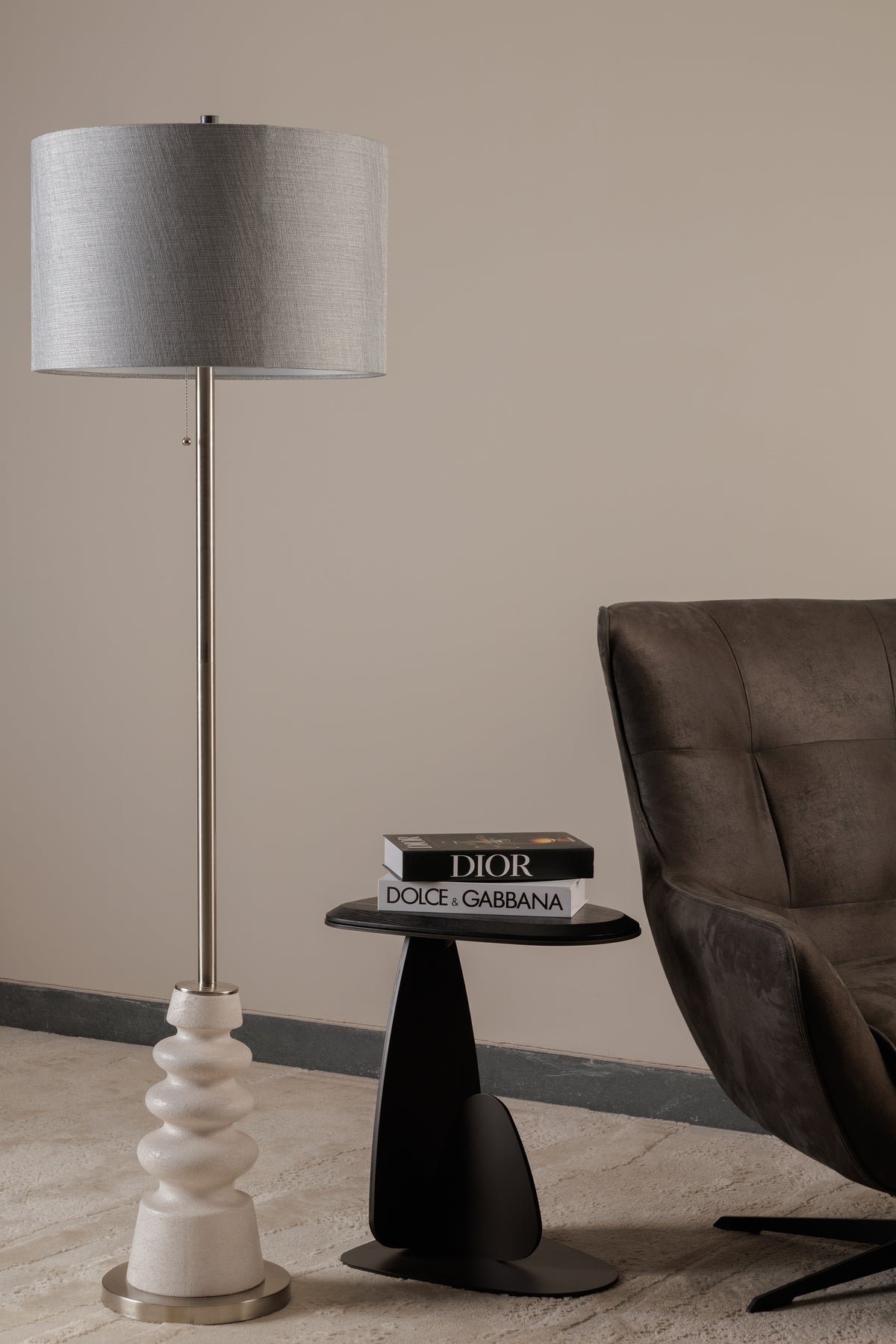 Peres 60'' Ceramic & Metal Floor Lamp, a serene blend of sculptural form and soft shimmer. The base features tiered white ceramic paired with brushed nickel accents for a clean, breezy look. Topped with a textured silver linen drum shade (18" x 18" x 11.5"), this lamp offers a stylish glow that complements beach-inspired, transitional, or modern interiors.