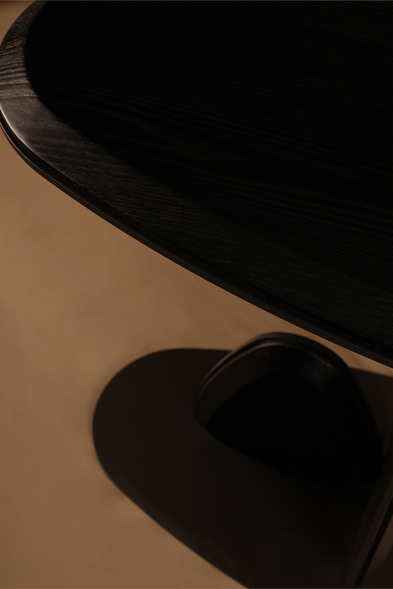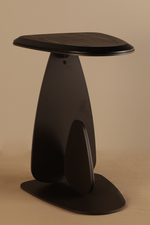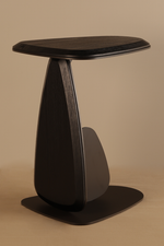 A sculptural side table defined by its asymmetrical top and organic pebble-shaped base, blending modern minimalism with the refined design language of Milanese interiors.