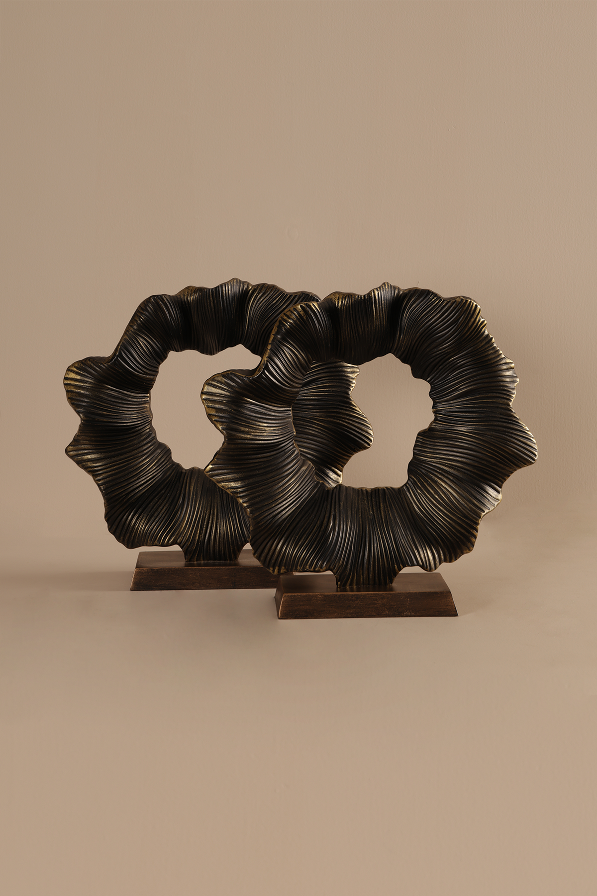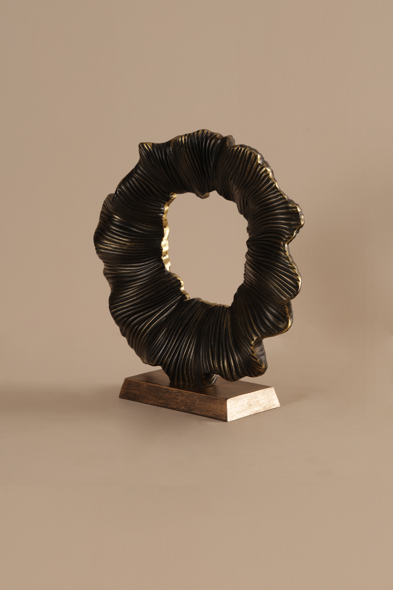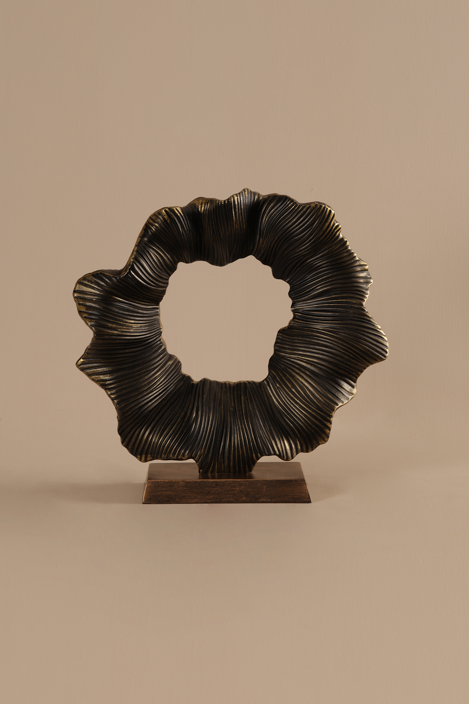 The Bloom Ornament captures the organic elegance of a flower mid-bloom, interpreted through a sculptural circular form with rich texture and flow. With dimensions of 28.3 × 7.5 × 27 cm, it’s crafted from resin and finished in a dark antique bronze tone, resting on a subtly shimmering bronzed base.
