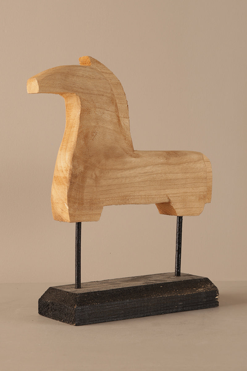 Infuse your space with Italian charm through the Cavallo Rustico Wooden Sculpture. Carved from natural wood with a stylized, abstract horse silhouette, this decorative accent stands proudly on a black base—offering a perfect blend of rustic artistry and minimalist design.