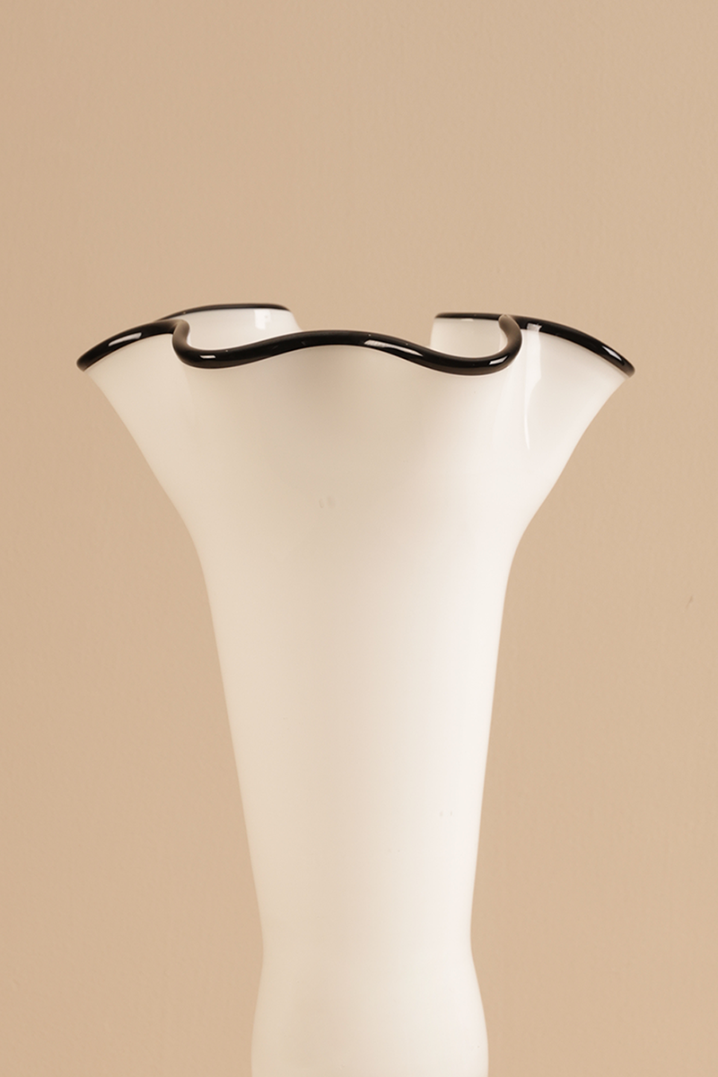 Classic White & Black Ceramic Flower Vase with Wavy Rim