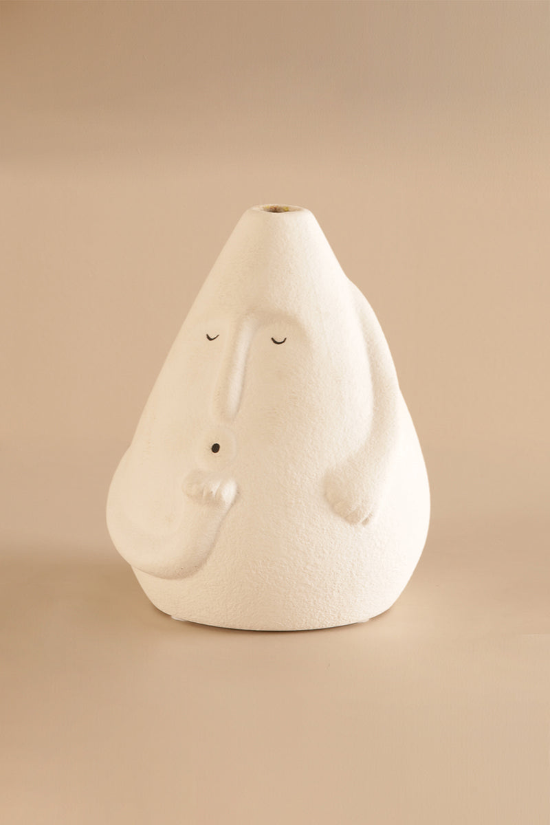 Softly expressive and quietly captivating, this sculptural ceramic vase brings a sense of calm artistry to modern interiors. Shaped in a rounded teardrop silhouette, the design features a gently stylised face with closed eyes and a subtle puckered mouth—evoking serenity, introspection, and charm.